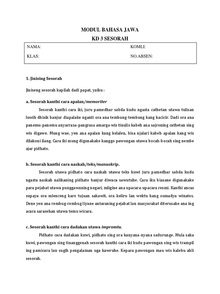 Contoh pidato bahasa jawa lan perangane. Эта градостроительная игра затягивает круче сериалов. Selain hal-hal diatas sesorah mempunyai susunan sendiri tidak jauh dari susunan pidato berikut Perangane utawa Susunan saking sesorah. Pidato Bahasa Jawa Maulid Nabi Muhammad Saw1 Pidato JawaTentang Lingkungan di Sekolah.