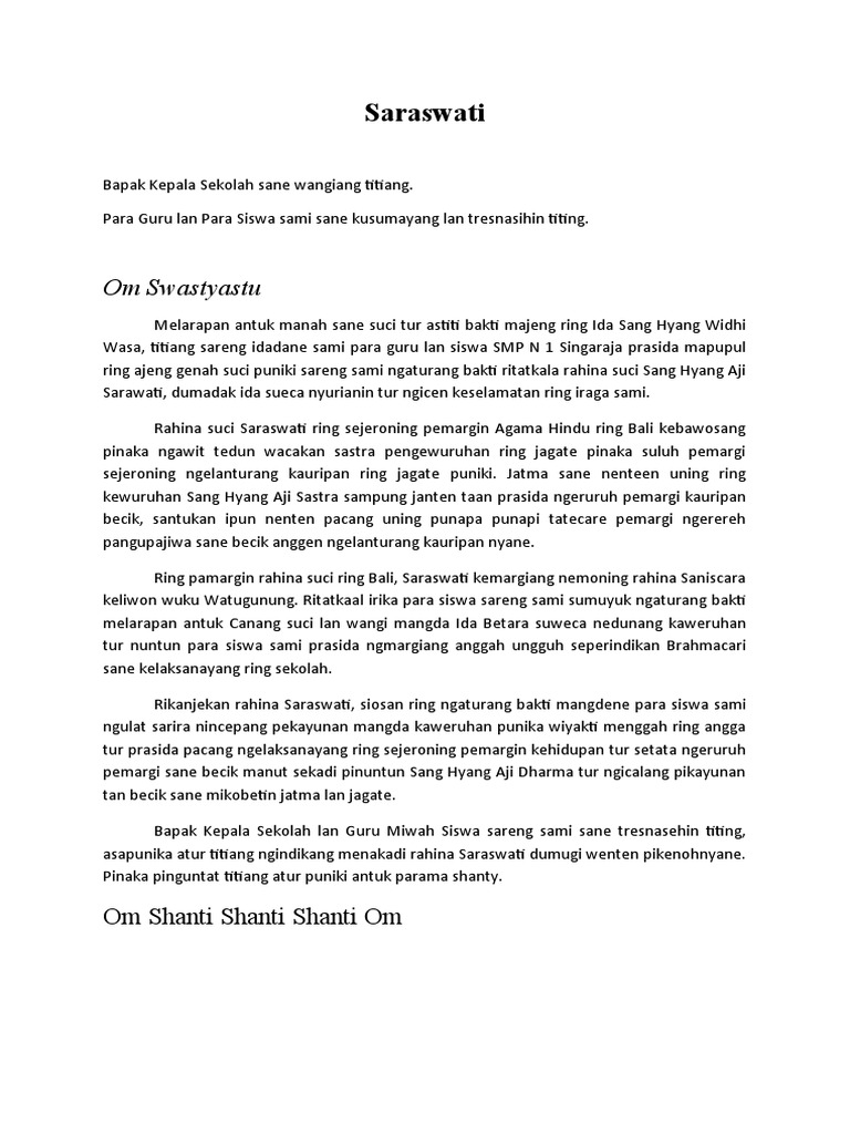 Pinih riin mantuka ring para sujana sami punika taler para mahadiaksa lan para pamiarsa sane dahat suksemayang titiang. Contoh Pidato Bahasa Bali Tema Lingkungan. DOWNLOAD FILE WORD Contoh Conto Pidato Pidarta Bahasa Basa Bali.