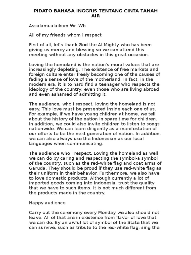 Pidato Bahasa Inggris Dengan Tema Cinta Tanah Air Sederet Com