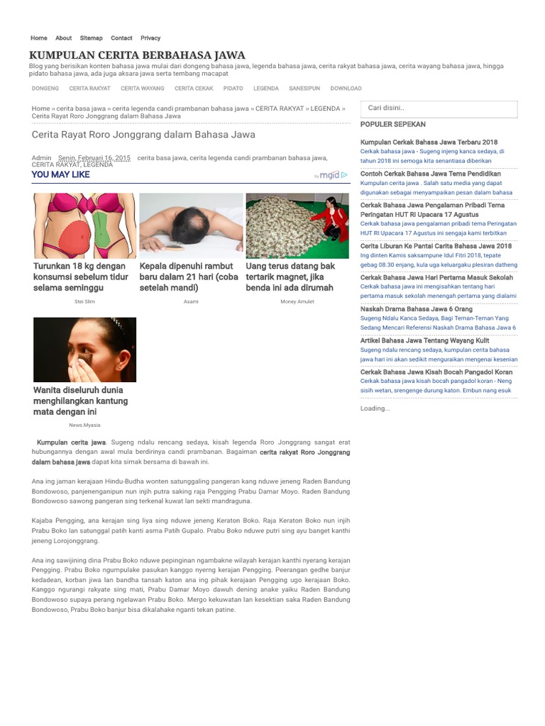 Contoh Cerita Rakyat Jawa - Hello friends baba-syam In the article that you read this time with the title Contoh Cerita Rakyat Jawa we have prepared this article well for you to read and retrieve information in it. Bagaimana kisah tersebut monggo kita simak bersama. Kisah ini merupakan kisah legenda yang berasal dari Jawa Tengah.