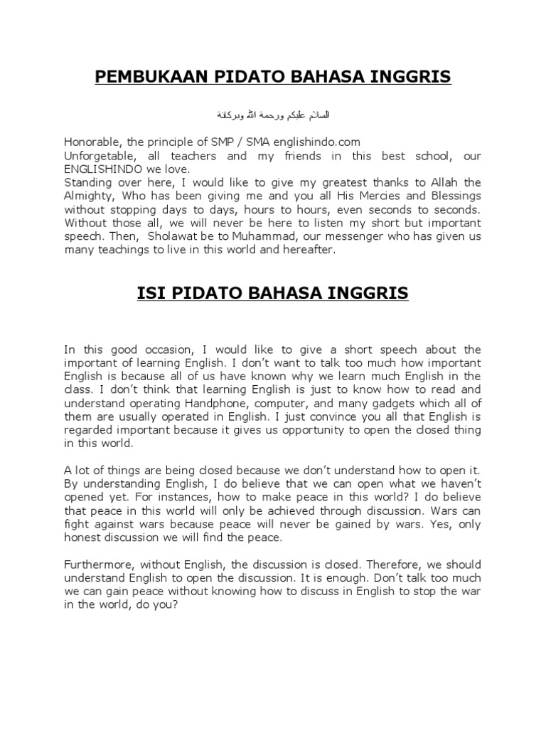 Contoh Pembukaan Pidato Bahasa Inggris Dan Artinya Sketsa Online