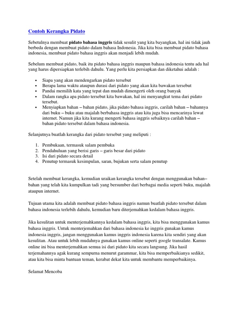 Berpidato bisa dipelajari dan dilatih supaya mampu. Gunakan kalimat singkat padat dan jelas. Contoh Pidato bahasa inggris.