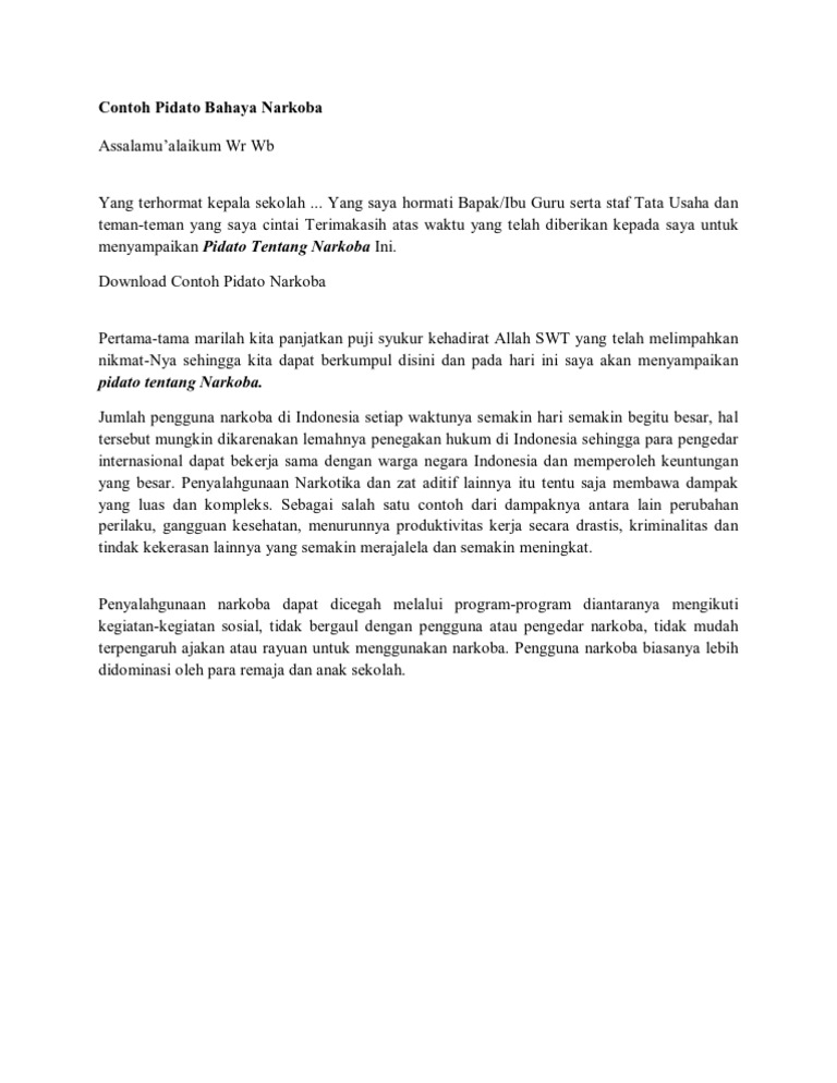 Contoh Pidato Bahaya Narkoba Docx