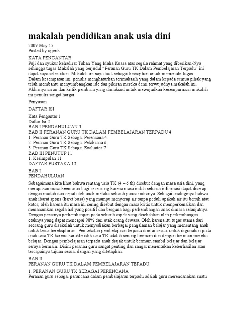 Artikel Pendidikan Anak Usia Dini Dalam Bahasa Inggris Terkait Pendidikan