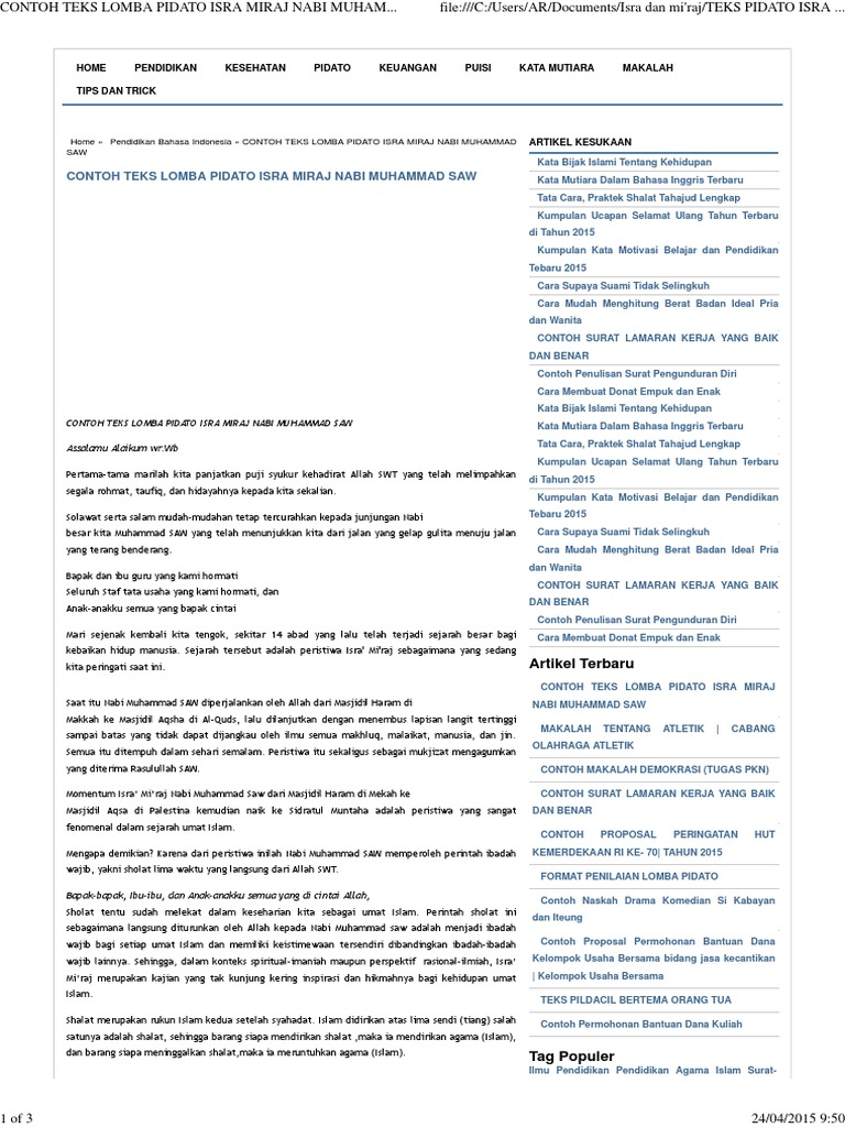 Contoh Pidato Isra Mi Raj Di Sekolah Singkat Docx
