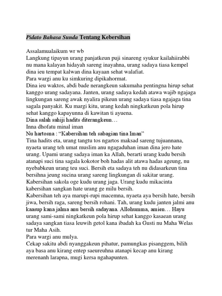Contoh pidato bahasa jawa tentang narkoba contoh pidato bahasa jawa tentang pendidikan contoh bahasa jawa tentang kebersihan contoh pidato bahasa jawa tentang perpisahan contoh pidato bahasa jawa tentang kesehatan. Contoh Pidato Singkat Bahasa Sunda Tentang Kesehatan Contoh Teks Naskah Pidato Bahasa Sunda tentang Pendidikan dan Kebersihan Lingkungan YouTube DOC Pidato Bahasa. Contoh Pidato Bahasa Sunda Singkat Terbaru dan Terlengkap Pidato Bahasa Sunda Biantara Beserta Contoh Tentang Pendidikan Perpisahan Kebersihan Kesehatan dan Lainnya pidato bahasa sunda tentang sabar contoh pidato bahasa sunda tentang perjuangan pidato bahasa sunda panjang pidato bahasa sunda tentang corona contoh pidato bahasa sunda lucu dan menghibur pidato bahasa sunda singkat tentang agama pidato bahasa sunda tentang perpisahan pidato bahasa.