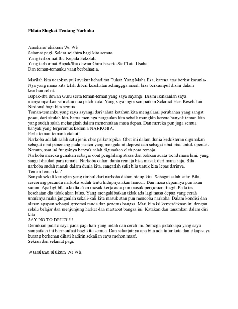 Contoh Pidato Tentang Narkoba Singkat Dan Jelas Blog Pendidikan