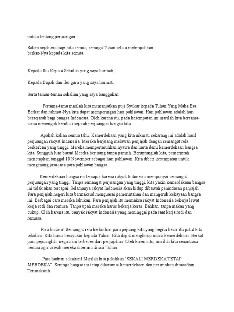 Contoh Pidato Terbaru Hari Pahlawan 10 November Pidato Bahasa Inggris Terbaru. Bagi adik adik yang sedang belajar bahasa lampung dan kesulitan dalam membuat pidato dengan berbahasa lampung berikut ini kami akan memberikan beberapa contoh naskah pidato berbahasa lampung yang kami peroleh dari berbagai sumber. Contoh Pidato 17 Agustus yang Singkat Tanggal 17 Agustus 1945 merupakan tanggal lahirnya kemerdekaan Negara Indonesia.