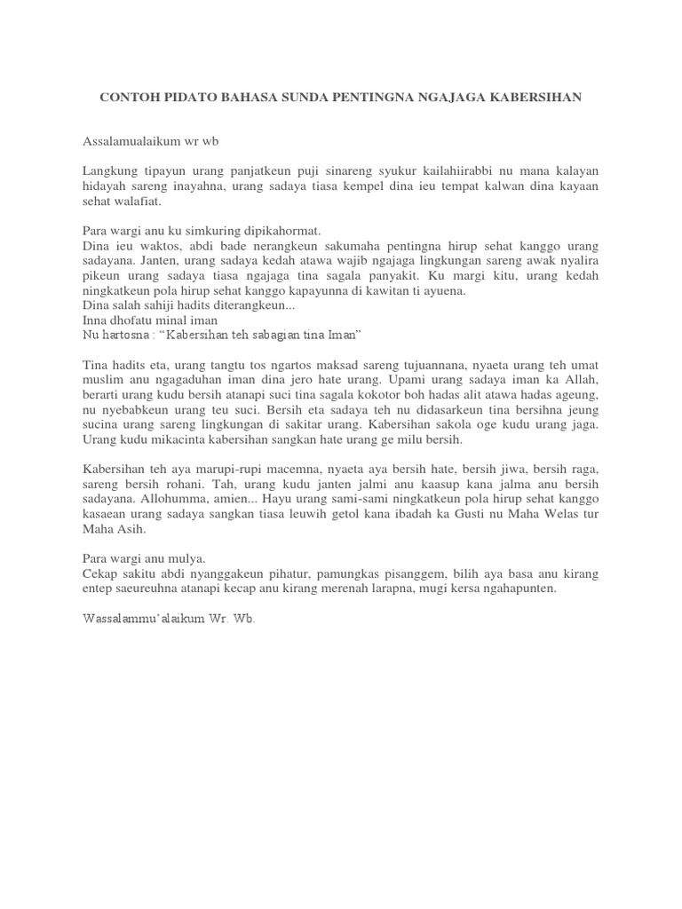 Seueur elmu anu aya di internet nu. Contoh Pidato Bahasa Sunda Pentingna Ngajaga Kasehatan. Wb Wilujeng Enjing Sadayana.