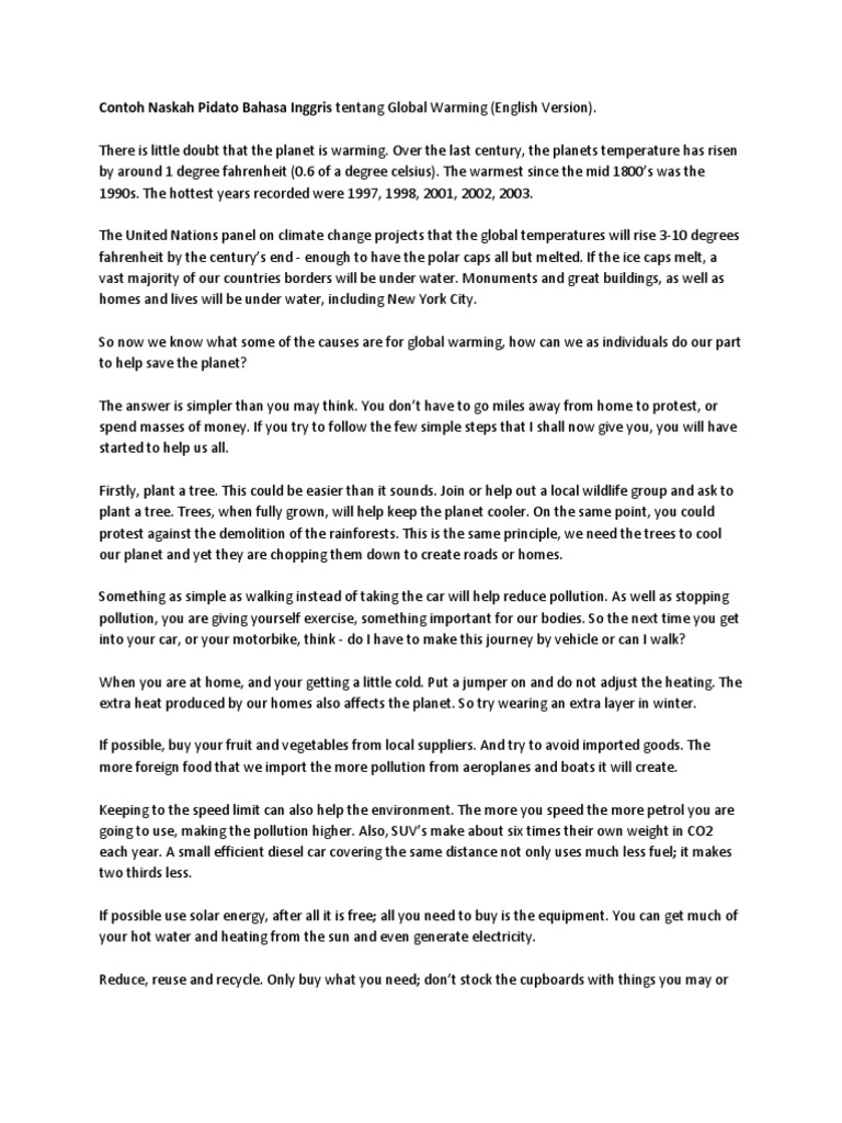 Contoh Naskah Pidato Bahasa Inggris Tentang Global Warming Global Warming Natural Environment
