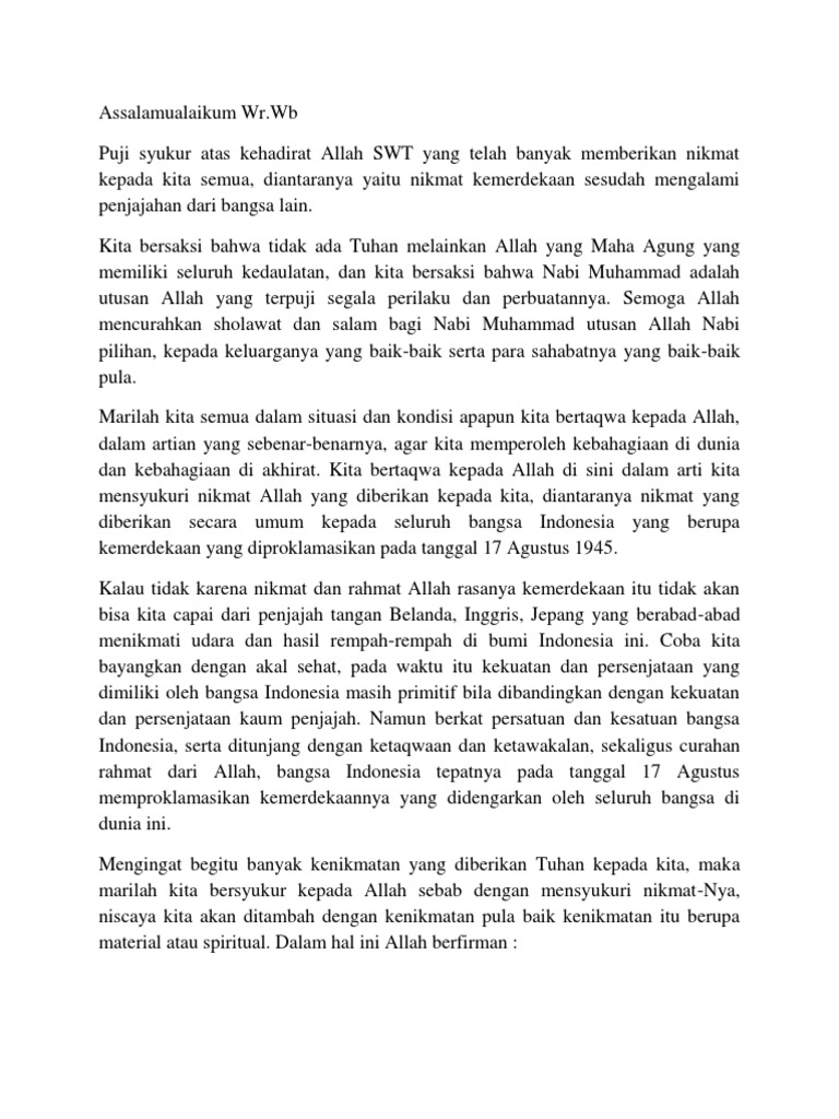 Teks Pidato Singkat Mensyukuri Nikmat Allah Docx