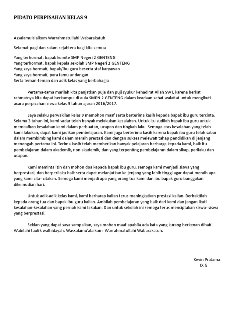 Pidato Perwakilan Kelas 9 Smp Pada Acara Perpisahan Sekolah