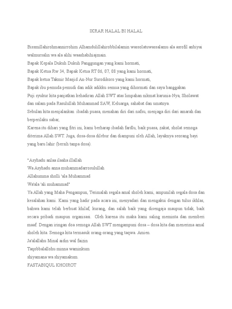 BUPATI PADANG LAWAS UTARA. Alhamdulillah alhamdulillahil ladzi arsala rasullahu bil huda wad dinil haq. Contoh IKRAR Pidato Halal Bi Halal dalam Bahasa Jawa Krama Terimakasih Atas Kunjungannya.