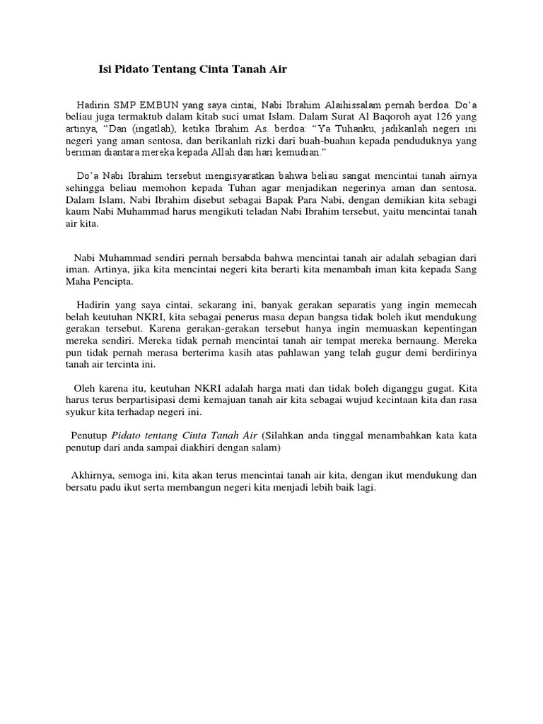 Teks Pidato Cinta Tanah Air Sebagian Dari Iman Berbagai Teks Penting