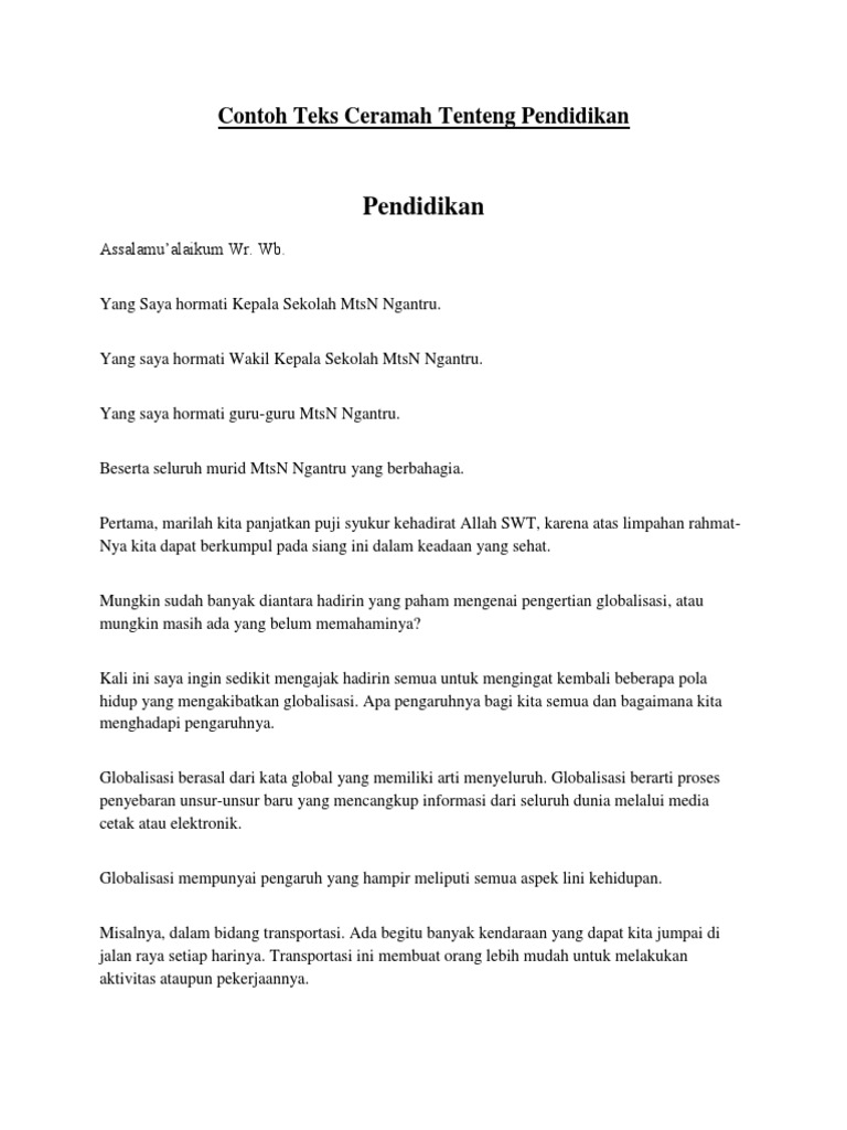 Contoh Teks Ceramah Tenteng Pendidikan