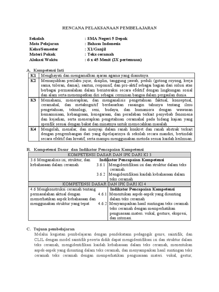 Rpp B Indo Kelas 11 Rev 2018 3 4 Dan 4 5 Teks Ceramah