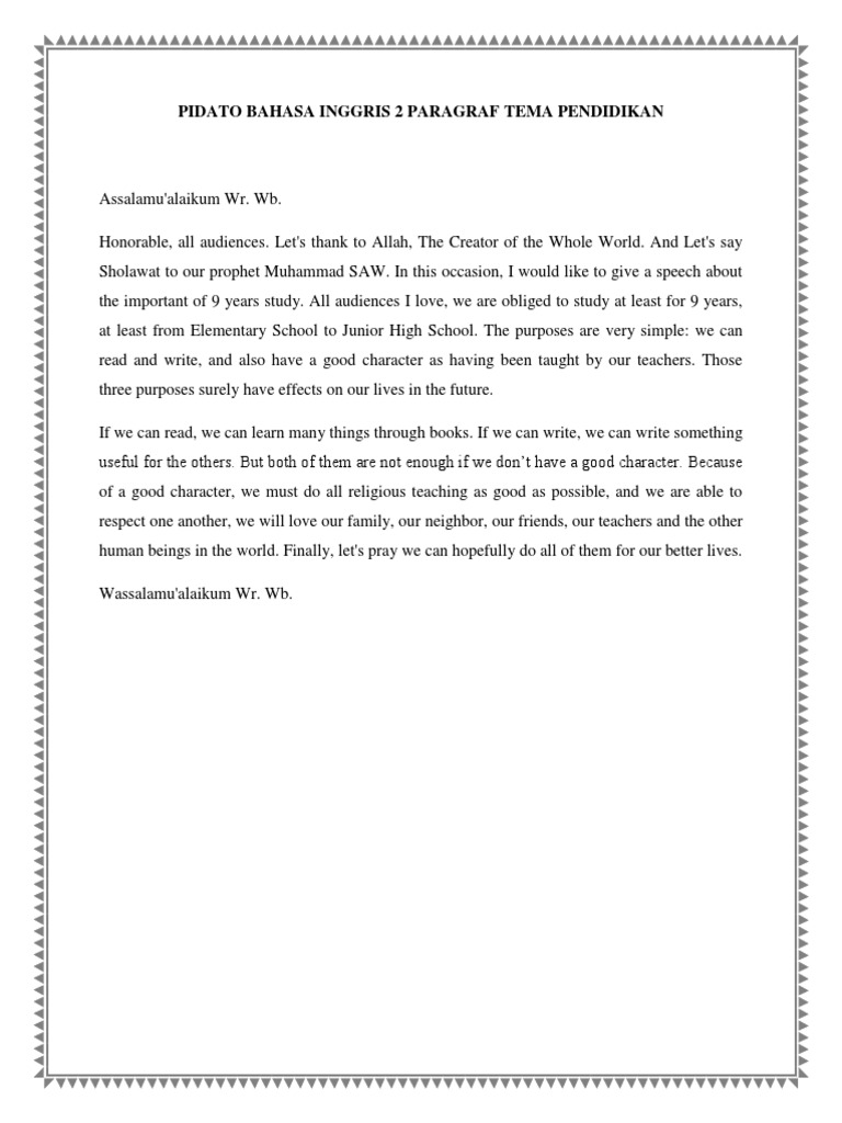 Pidato Bahasa Inggris 2 Paragraf Tema Pendidikan