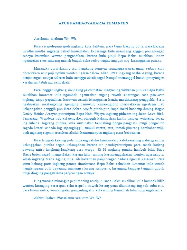 Conto Pidato Boso Jowo Atur Pambagyo Harjo Manten Lakaran