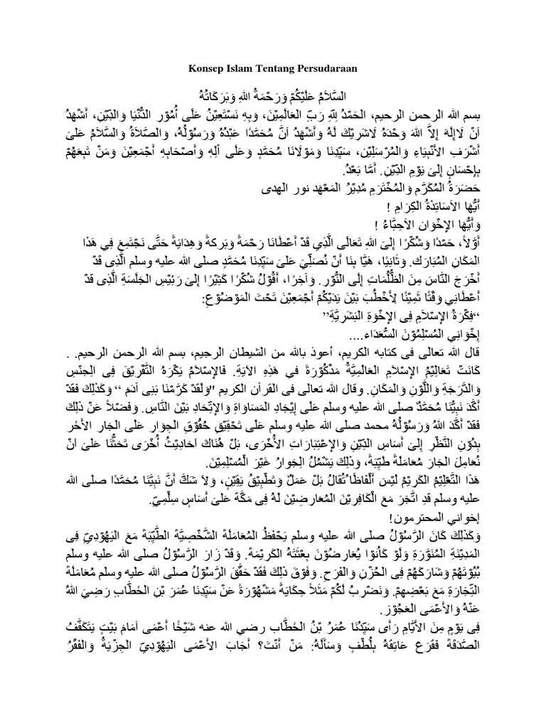 Pidato Bahasa Arab Konsep Islam Tentang Persudaraan