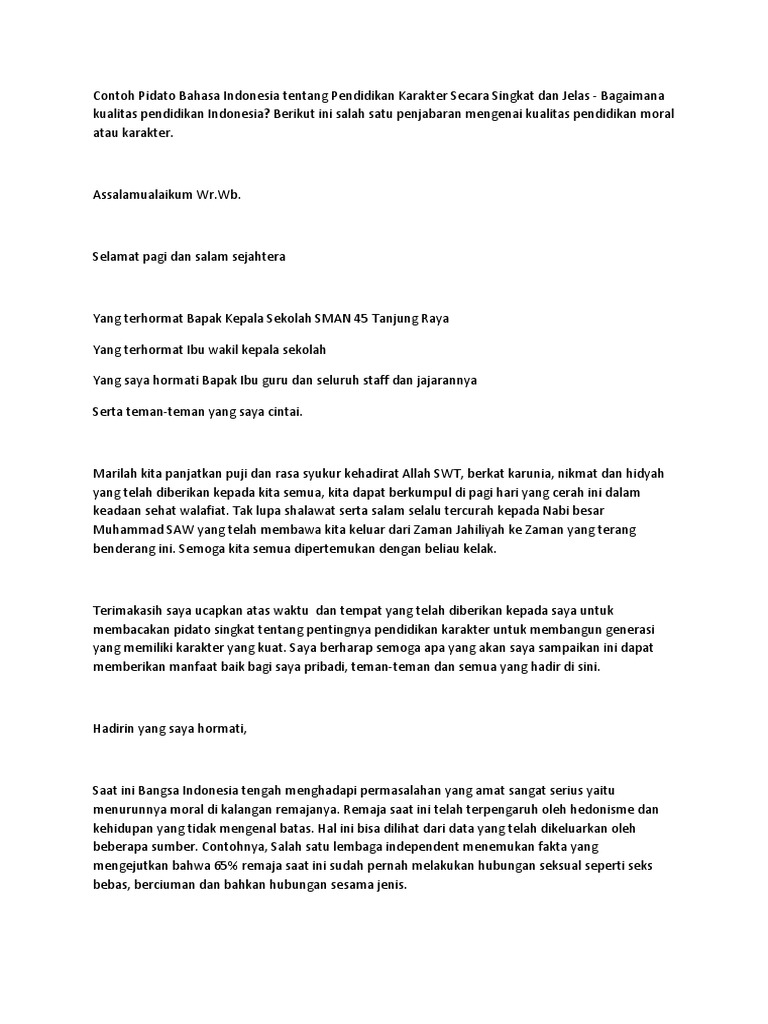 Pada hari yang indah ini izinkan saya untuk berpidato mengenai pendidikan moral. Contoh Pidato Bahasa Jawa Tentang Pendidikan. Pidato Singkat Tentang Pendidikan Berkarakter.