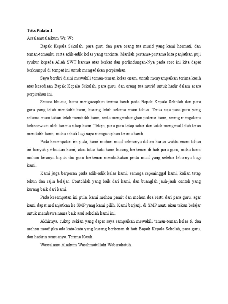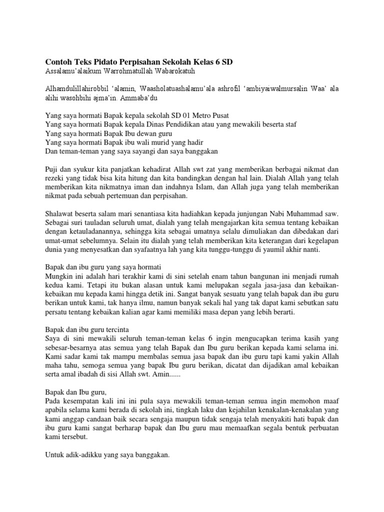 Naskah Pidato Perpisahan Siswa Kelas Vi Sdit Al Pdf