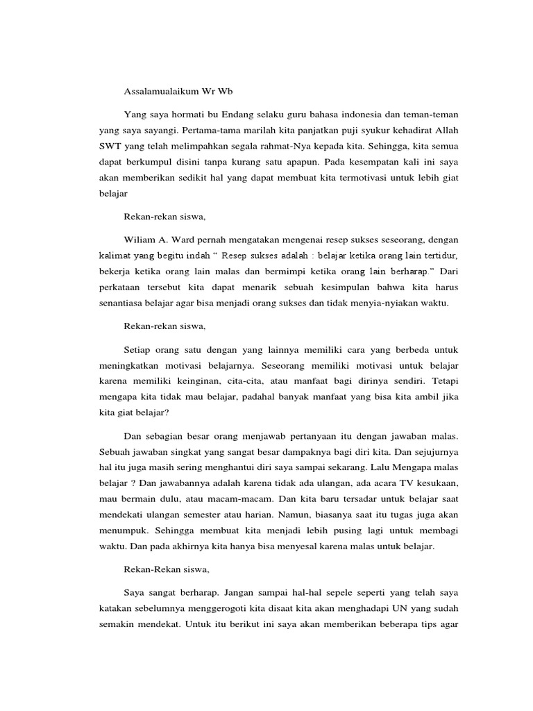 Contoh Pidato Tentang Meningkatkan Motivasi Belajar