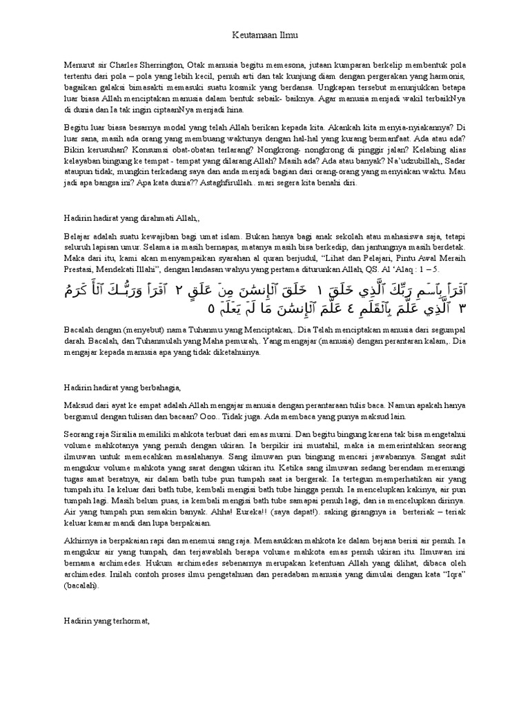 Teks pidato keutamaan membaca al quran cocok banget buat latihan pidato di sekolahCek update di Playlist yahCek update di Playlist ya. Kumpulan Teks Syarhil Qur An Terbaru Berbagai Teks Penting. Naskah Syarhil Quran.