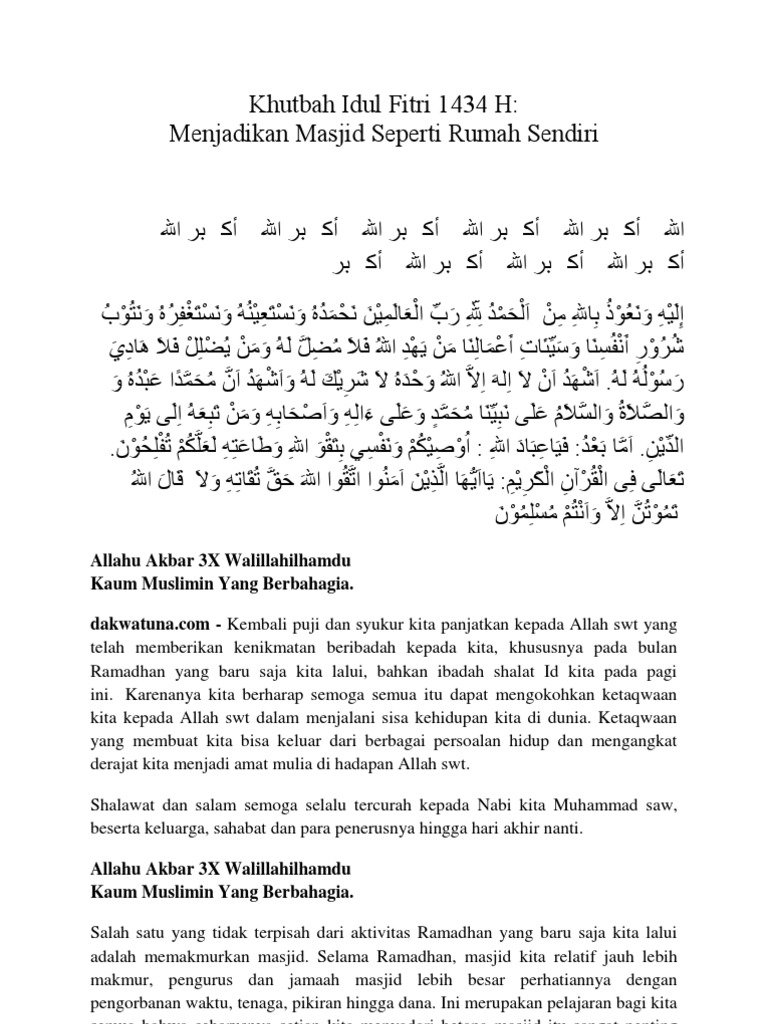 Pdf Khutbah Idul Fitri 1436 Al Fitri Nurlina Nj Academia Edu