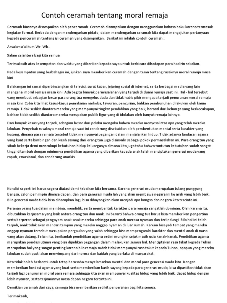 Contoh Ceramah Tentang Moral Remaja Pdf