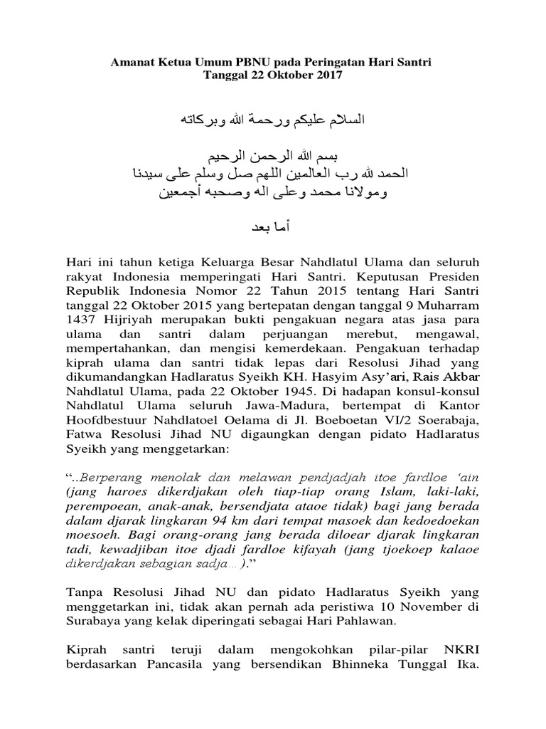 Teks Pidato Tentang Hari Santri Kumpulan Contoh Terbaik Makalah Pedia