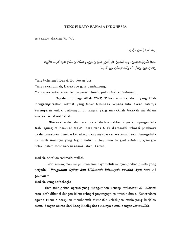 Teks pidato bahasa indonesia islami. Contoh Kata Sambutan - Sebuah kata sambutan pidato tentunya sangat penting keberadannya dalam pidato. Contoh Pembukaan Pidato Upacara Bendera. Contoh Pidato Menjaga Kebersihan Lingkungan Sekolah.